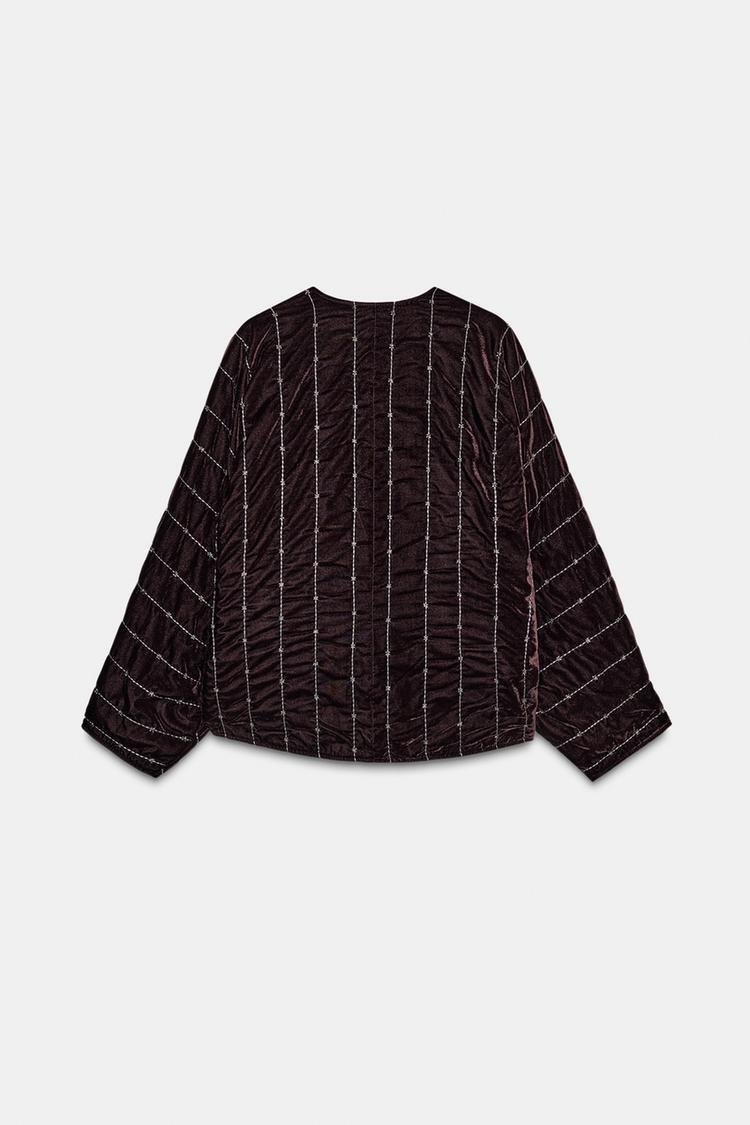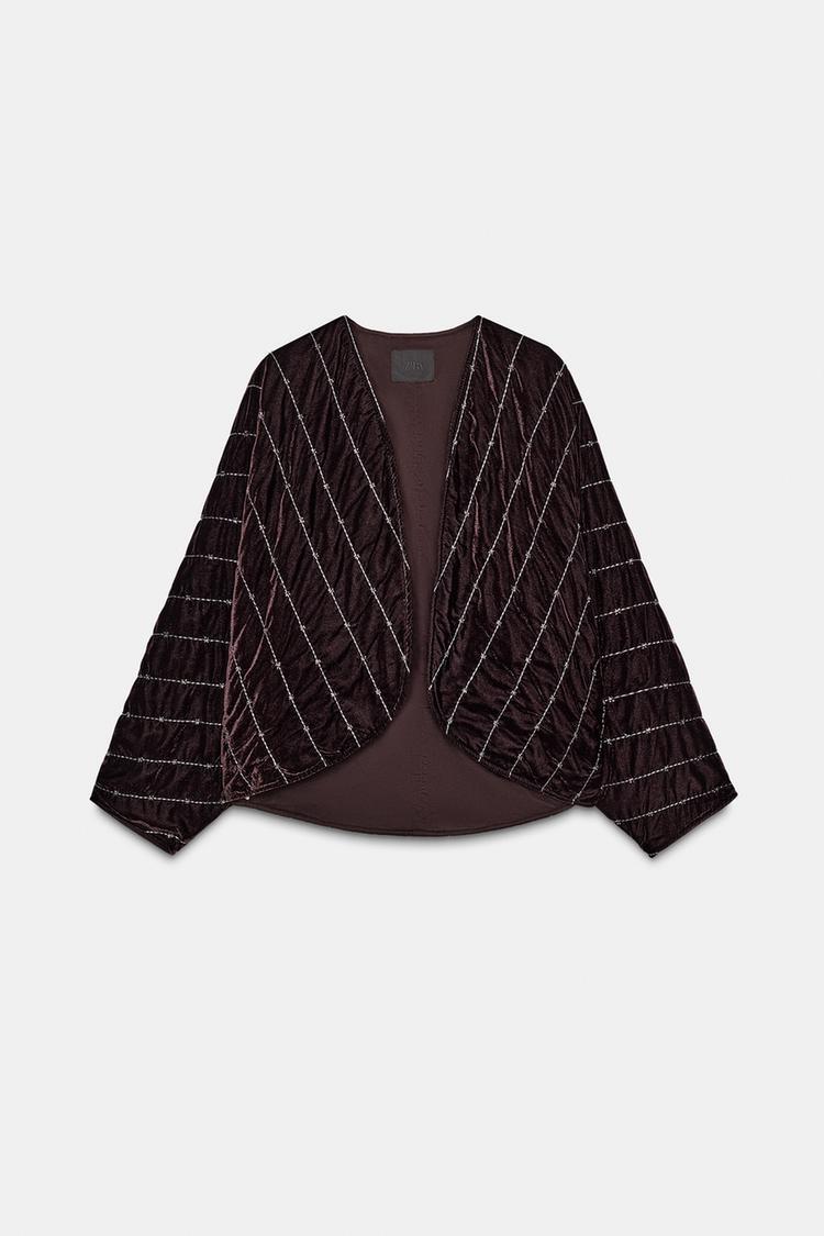 ZARA СТЕГАНОЕ БАРХАТНОЕ КИМОНО С БУСИНАМИ, КОРИЧНЕВЫЙ