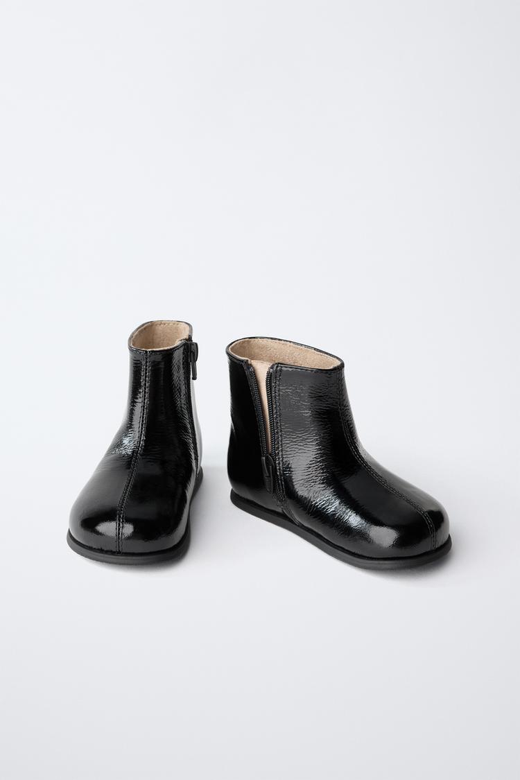 ZARA СТЕГАНЫЕ КОЖАНЫЕ БОТИНКИ, ЧЕРНЫЙ