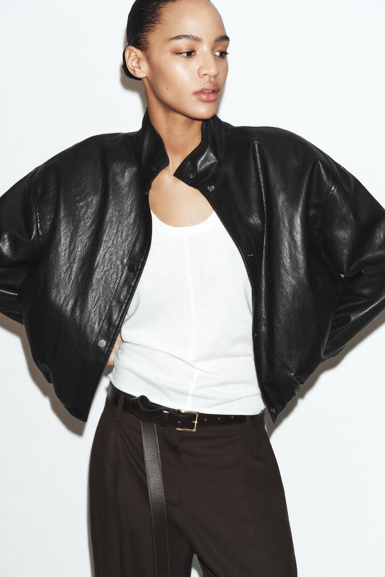 ZARA СТЕГАНЫЙ БОМБЕР ИЗ ИСКУССТВЕННОЙ КОЖИ, ЧЕРНЫЙ