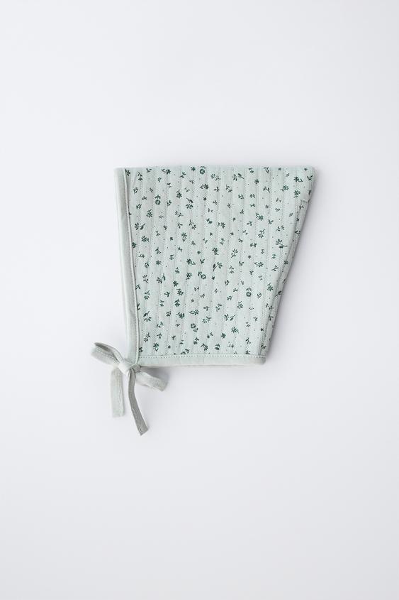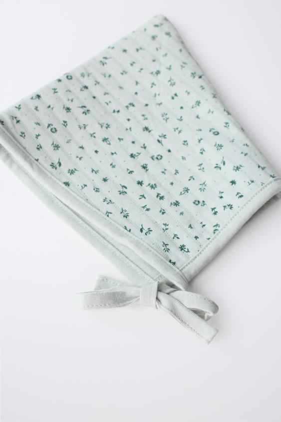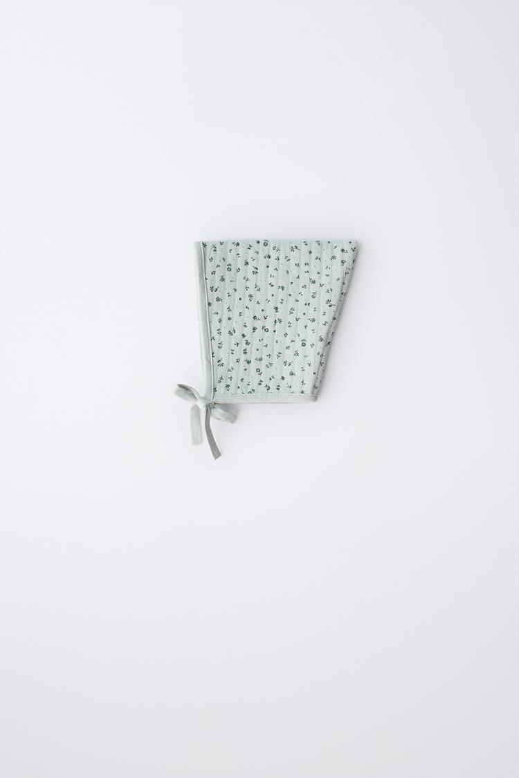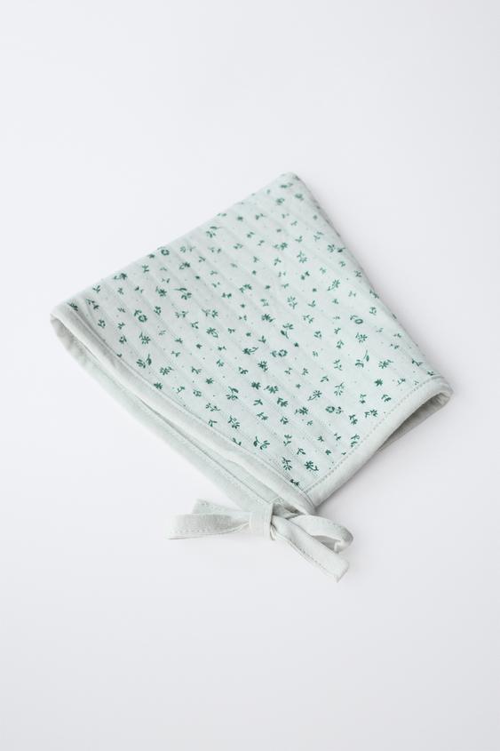 ZARA СТЕГАНЫЙ ЧЕПЧИК С ЦВЕТАМИ, ЗЕЛЕНОВАТЫЙ