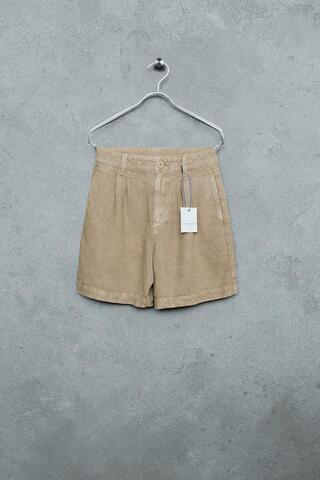 ZARA STORIESZ — БЕРМУДЫ С ЗАЩИПАМИ ИЗ ЛЬНА, СЕРО-КОРИЧНЕВЫЙ