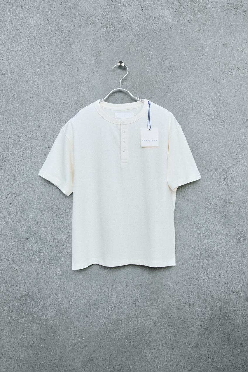 ZARA STORIESZ - ФУТБОЛКА HEAVY WEIGHT С ВОРОТНИКОМ НА ПУГОВИЦАХ, ЭКРЮ