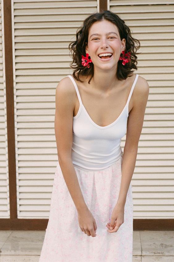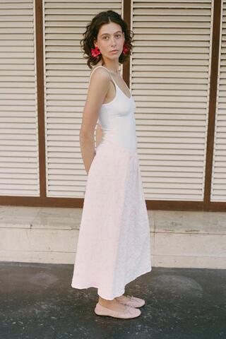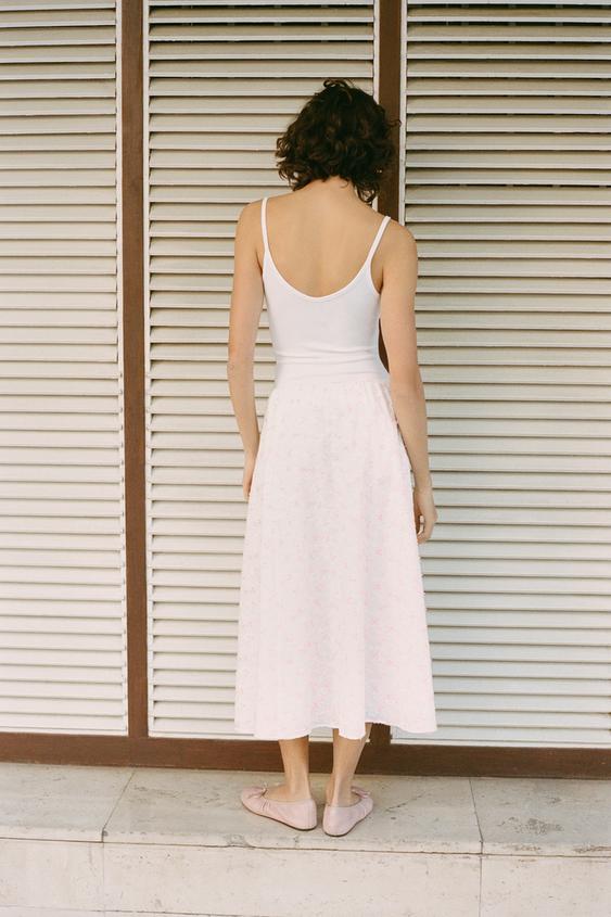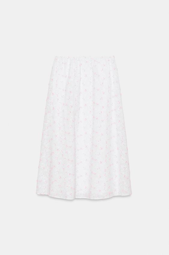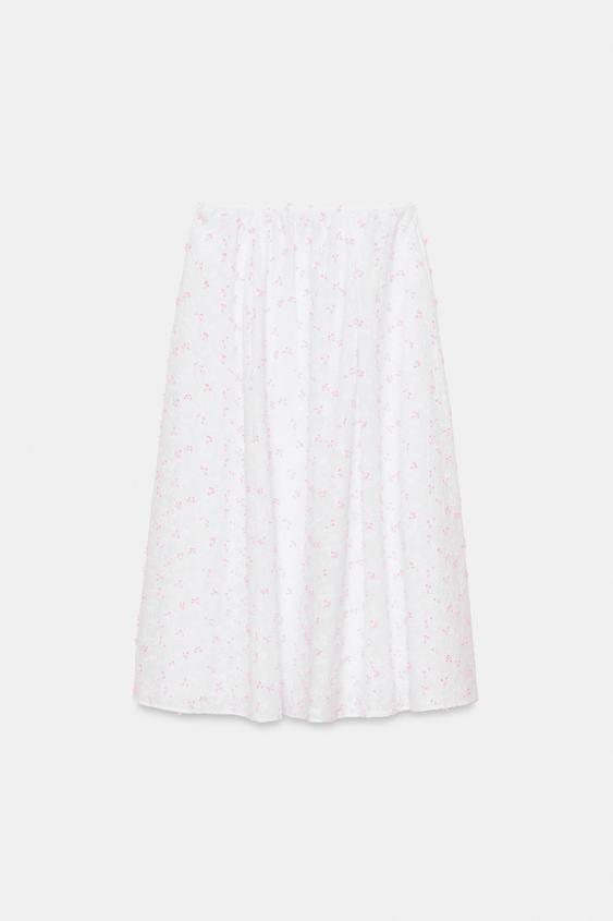 ZARA СТРУКТУРНАЯ ЮБКА-НАКИДКА МИДИ, РОЗОВЫЙ/БЕЛЫЙ