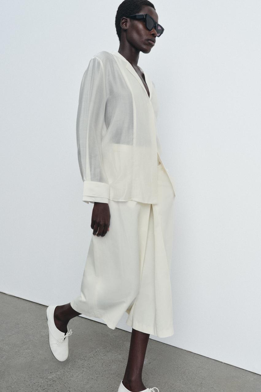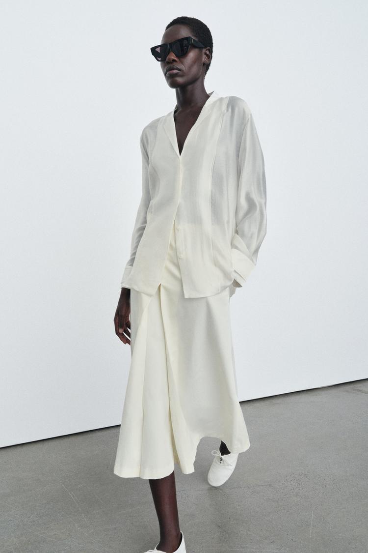ZARA СТРУЯЩАЯСЯ РУБАШКА ZW COLLECTION, ЖЕЛТОВАТО-БЕЛЫЙ