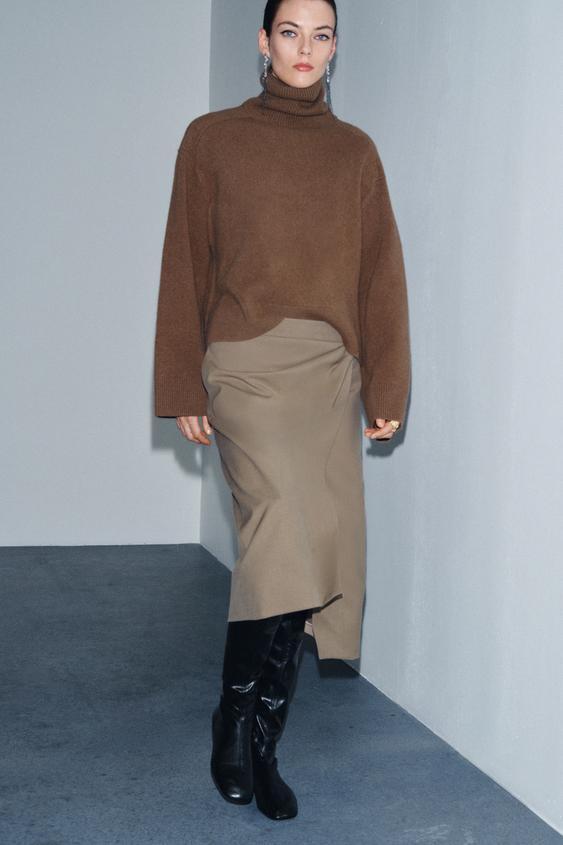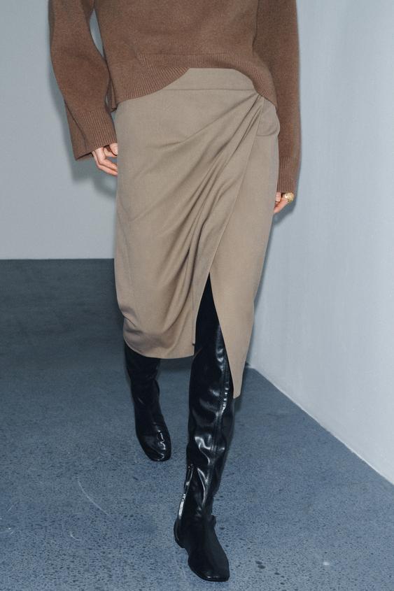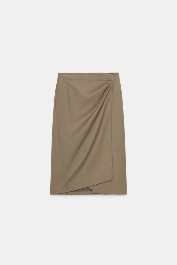 ZARA СТРУЯЩАЯСЯ ЮБКА-ПАРЕО — ZW COLLECTION, СЕРО-КОРИЧНЕВЫЙ