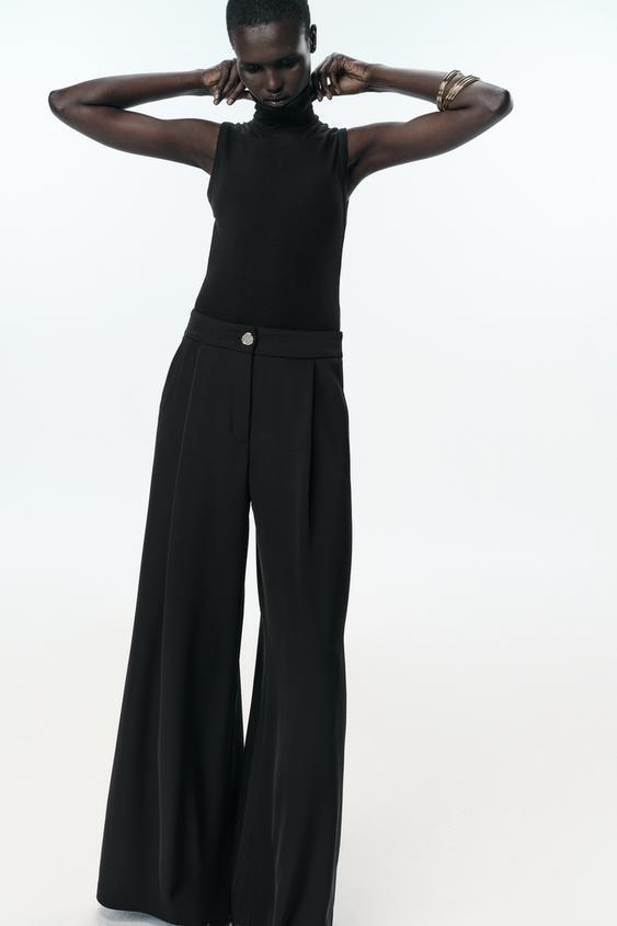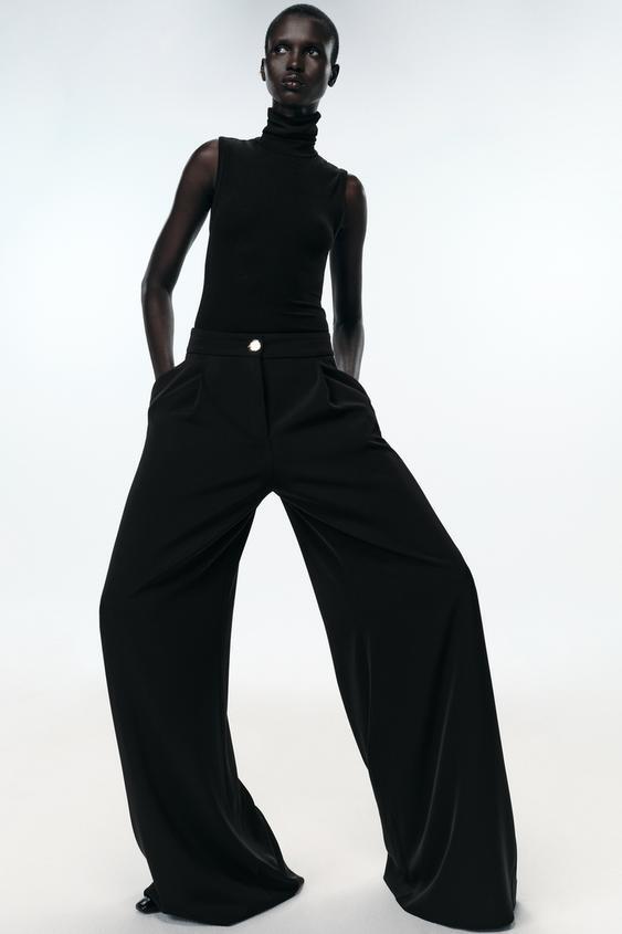 ZARA СТРУЯЩИЕСЯ БРЮКИ ПАЛАЦЦО, ЧЕРНЫЙ
