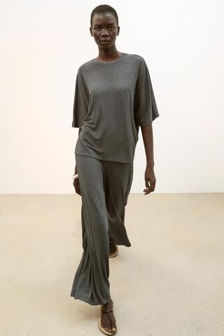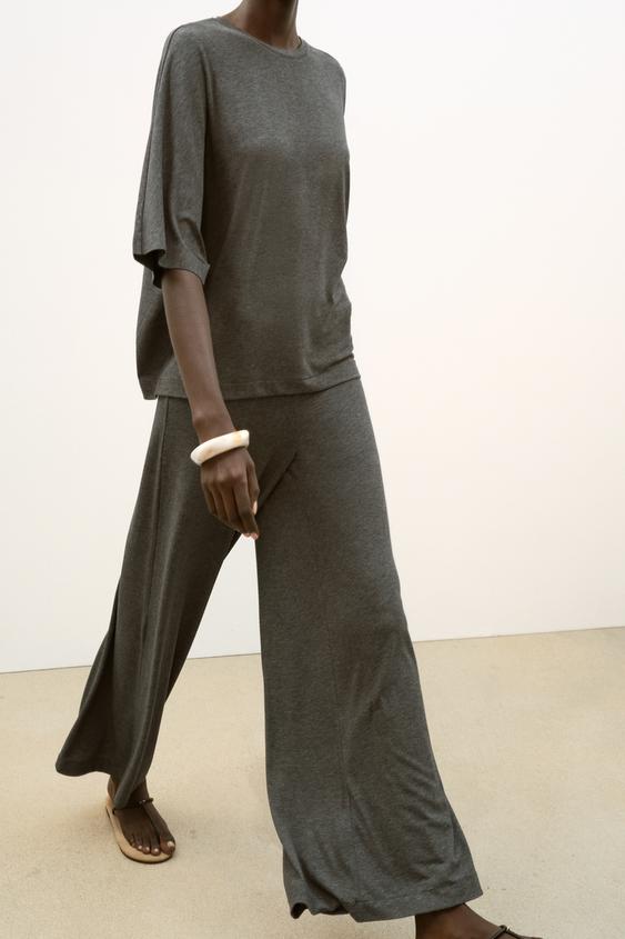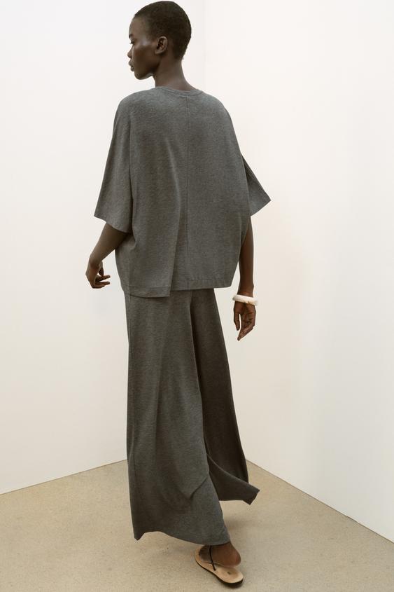 ZARA СТРУЯЩИЕСЯ БРЮКИ-ПАЛАЦЦО, МЯГКИЙ СЕРЫЙ