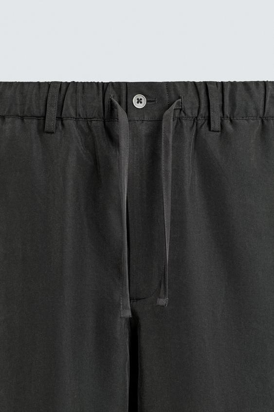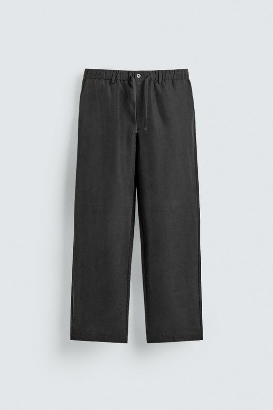 ZARA СТРУЯЩИЕСЯ БРЮКИ RELAXED FIT, ЧЕРНЫЙ