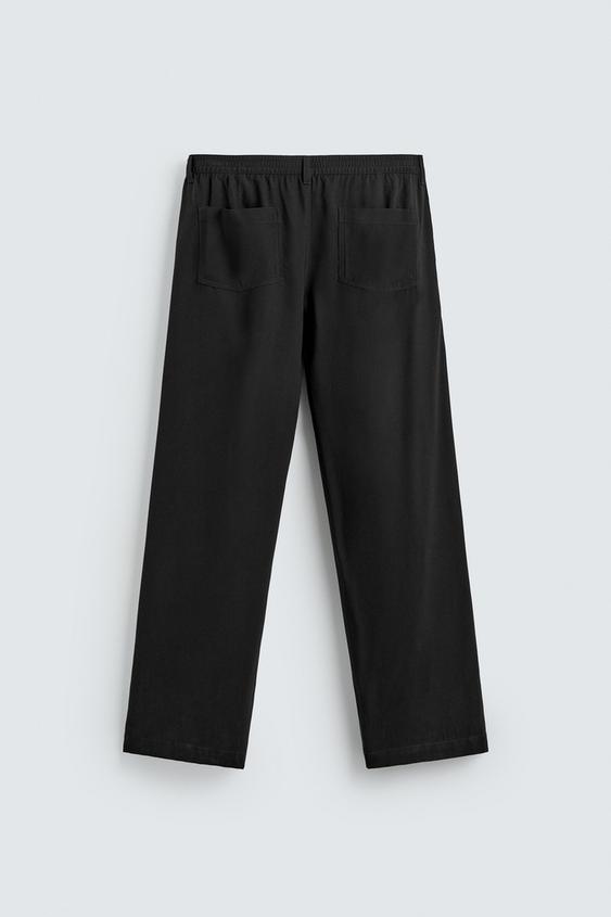 ZARA СТРУЯЩИЕСЯ БРЮКИ RELAXED FIT, ЧЕРНЫЙ