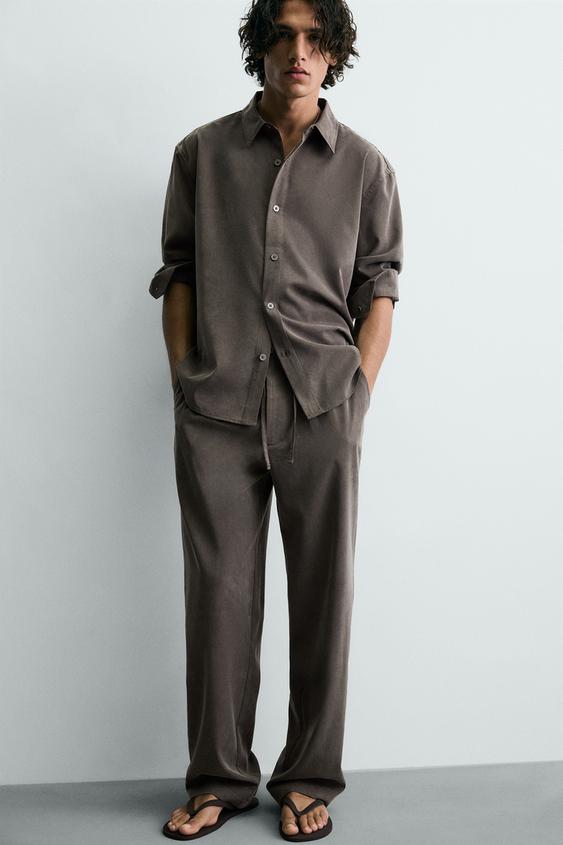 ZARA СТРУЯЩИЕСЯ БРЮКИ RELAXED FIT, РОЗОВАТО-КОРИЧНЕВЫЙ