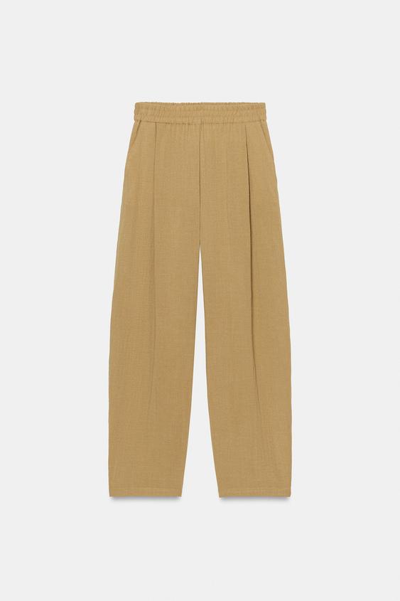 ZARA СТРУЯЩИЕСЯ БРЮКИ С ЭЛАСТИЧНЫМ ПОЯСОМ, РЫЖЕВАТО-КОРИЧНЕВЫЙ