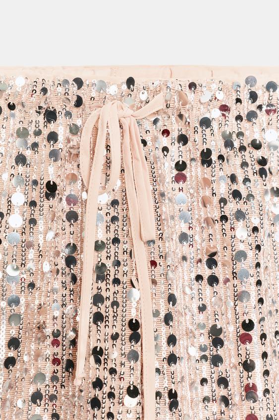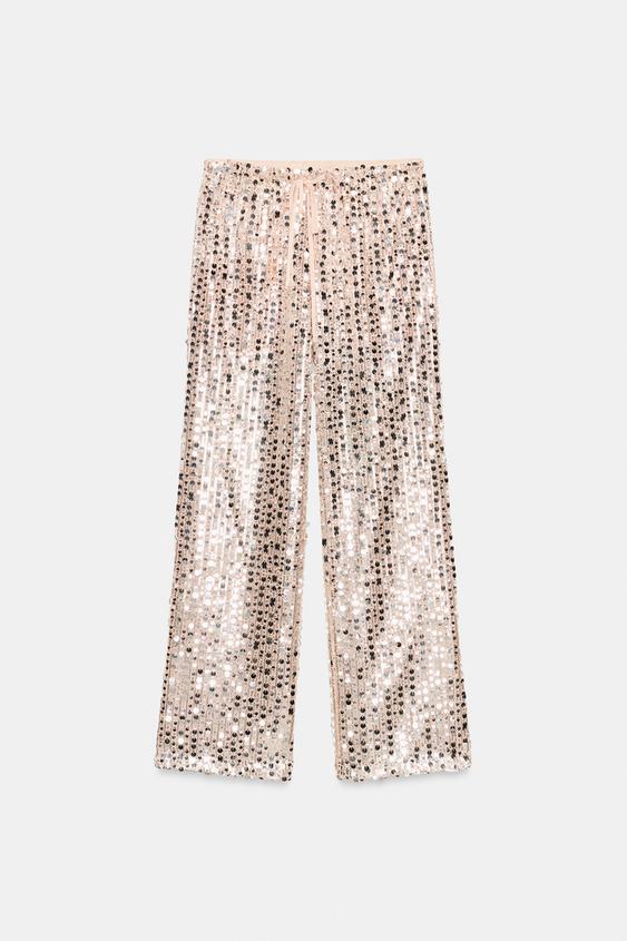 ZARA СТРУЯЩИЕСЯ БРЮКИ С ПАЙЕТКАМИ, СЕРЕБРИСТЫЙ