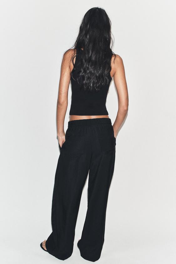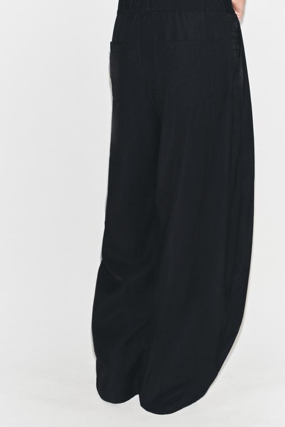 ZARA СТРУЯЩИЕСЯ БРЮКИ СО СКЛАДКАМИ, ЧЕРНЫЙ