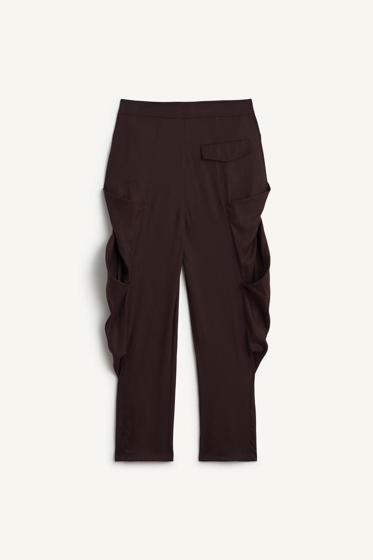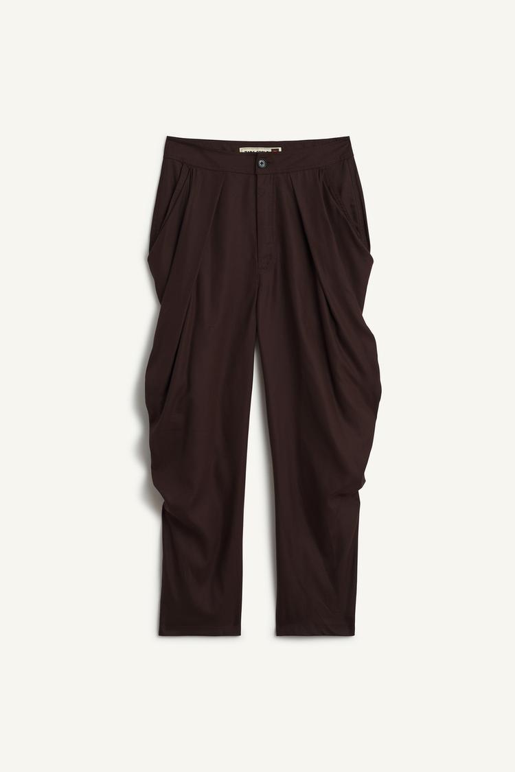 ZARA СТРУЯЩИЕСЯ БРЮКИ СО СРЕДНЕЙ ТАЛИЕЙ ИЗ СМЕСОВОЙ ТКАНИ ЛИОЦЕЛЛА, ШОКОЛАДНЫЙ