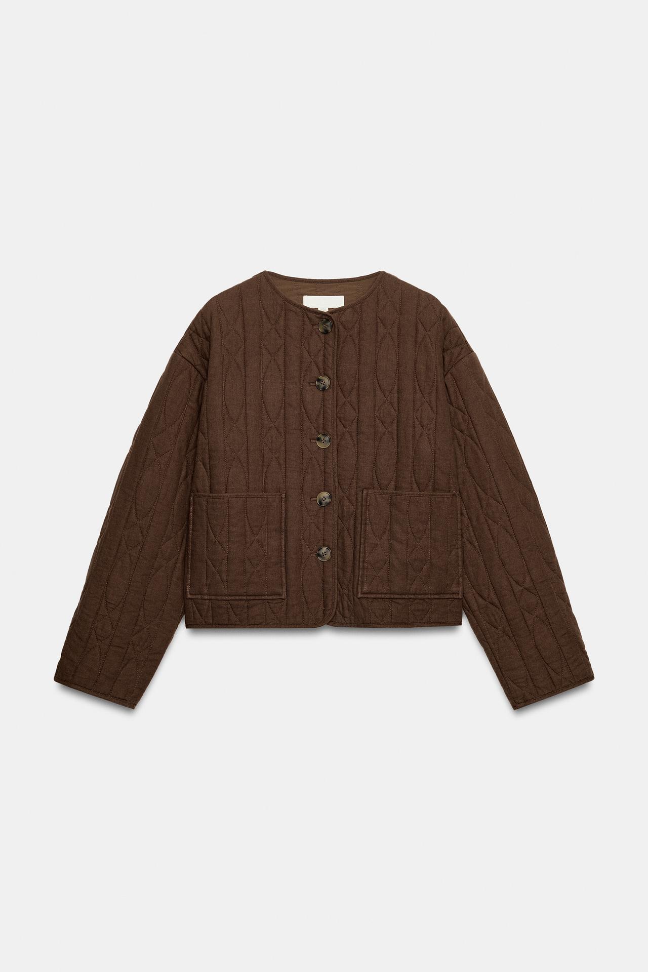 ZARA СТЁГАНАЯ КУРТКА ИЗ ЛЬНА, КОРИЧНЕВЫЙ