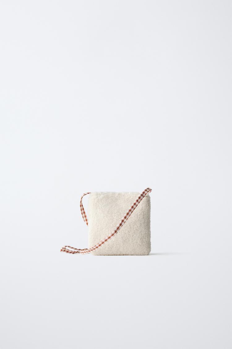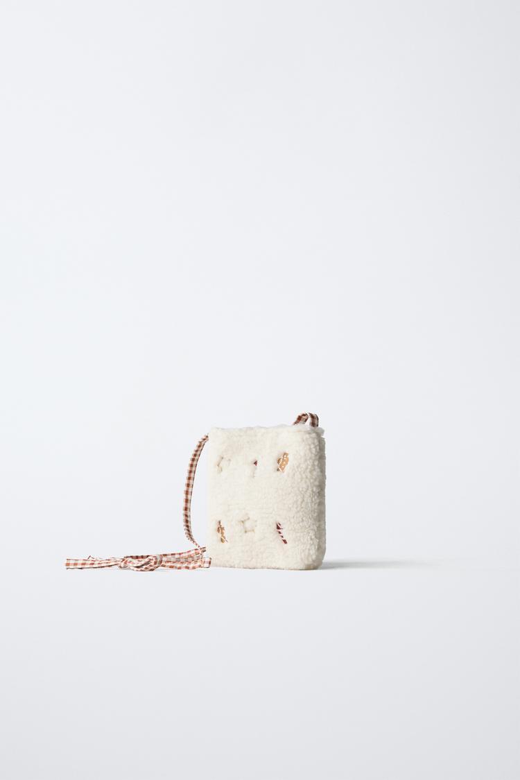 ZARA СУМКА ИЗ ИСКУССТВЕННОЙ ОВЧИНЫ С НОВОГОДНЕЙ ВЫШИВКОЙ, ЭКРЮ