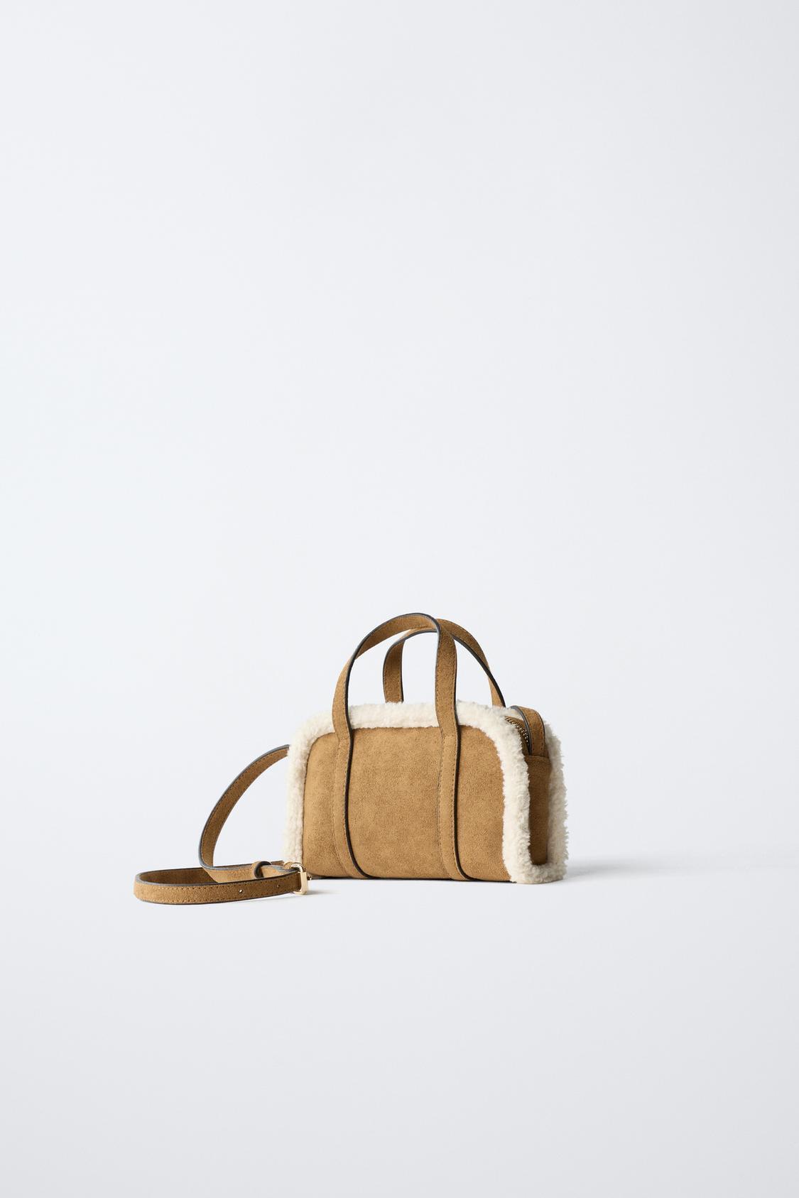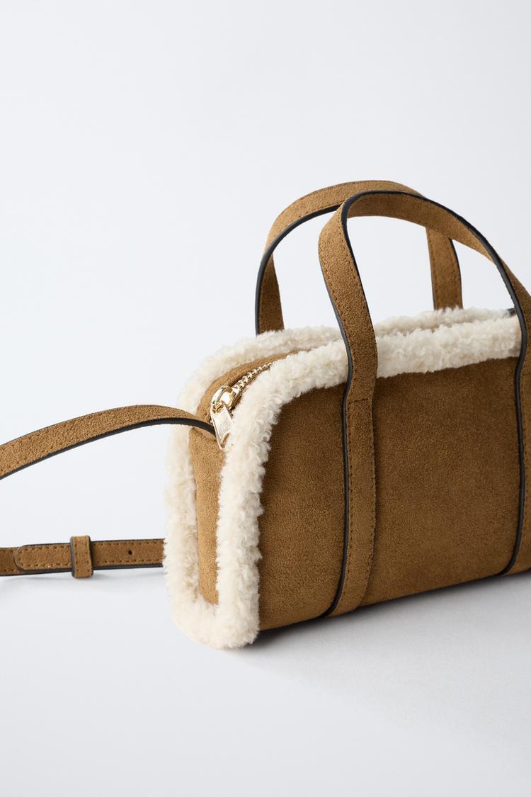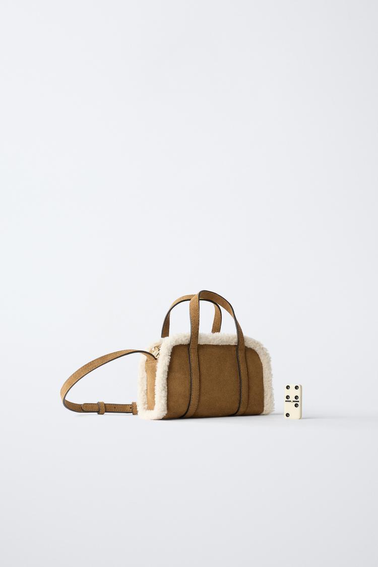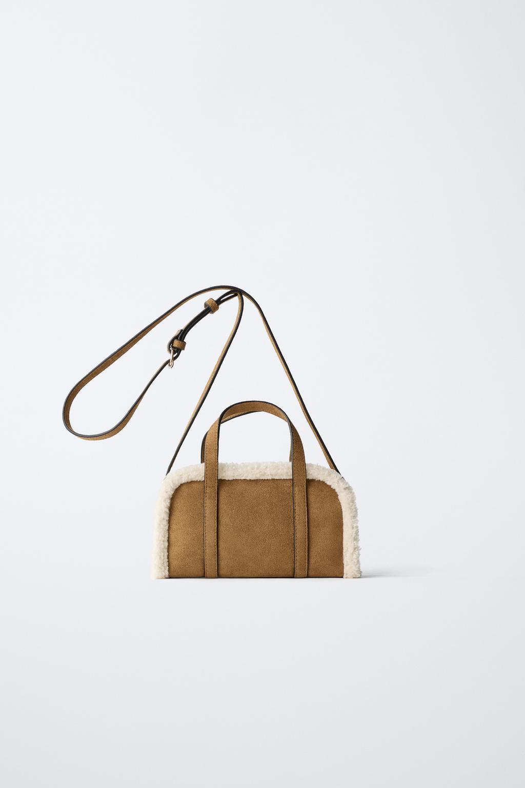 ZARA СУМКА ИЗ ОВЧИНЫ С ПЛЕЧЕВЫМ РЕМНЕМ, КОРИЧНЕВЫЙ