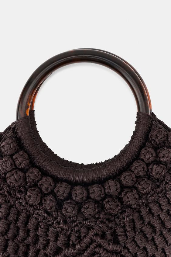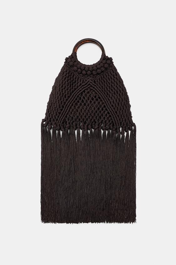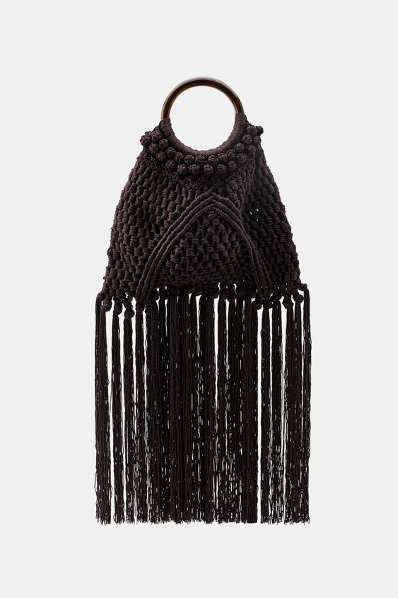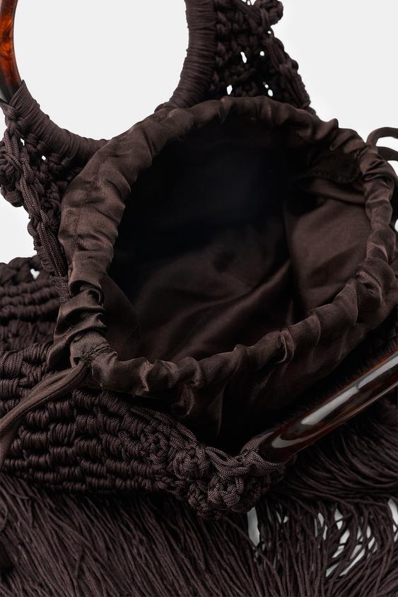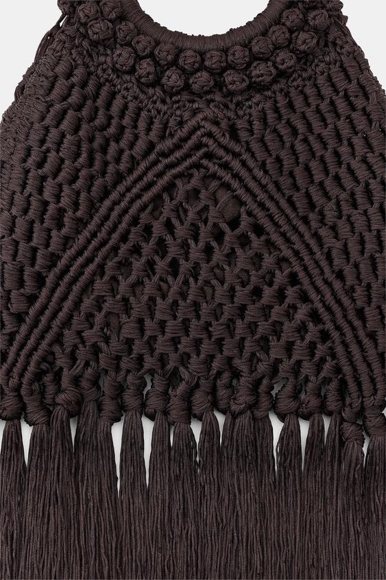 ZARA СУМКА ИЗ ТКАНИ С УЗЛАМИ И БАХРОМОЙ, КОРИЧНЕВЫЙ
