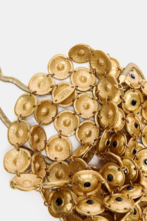 ZARA СУМКА-МЕШОК С МЕТАЛЛИЧЕСКИМИ ДЕТАЛЯМИ, ЗОЛОТИСТЫЙ