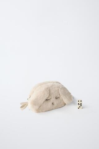 ZARA СУМКА-РЮКЗАК «КРОЛИК» ИЗ ИСКУССТВЕННОГО МЕХА, ЭКРЮ