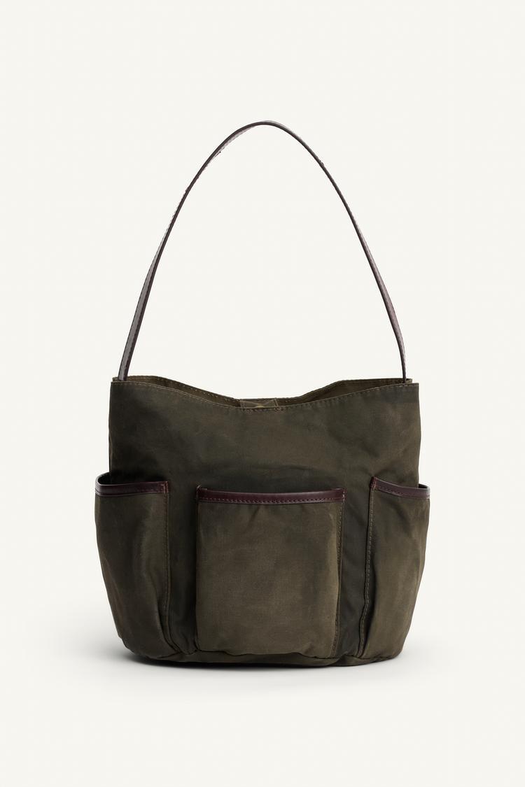 ZARA СУМКА С КОЖАНЫМИ ЭЛЕМЕНТАМИ, ЗЕЛЕНЫЙ
