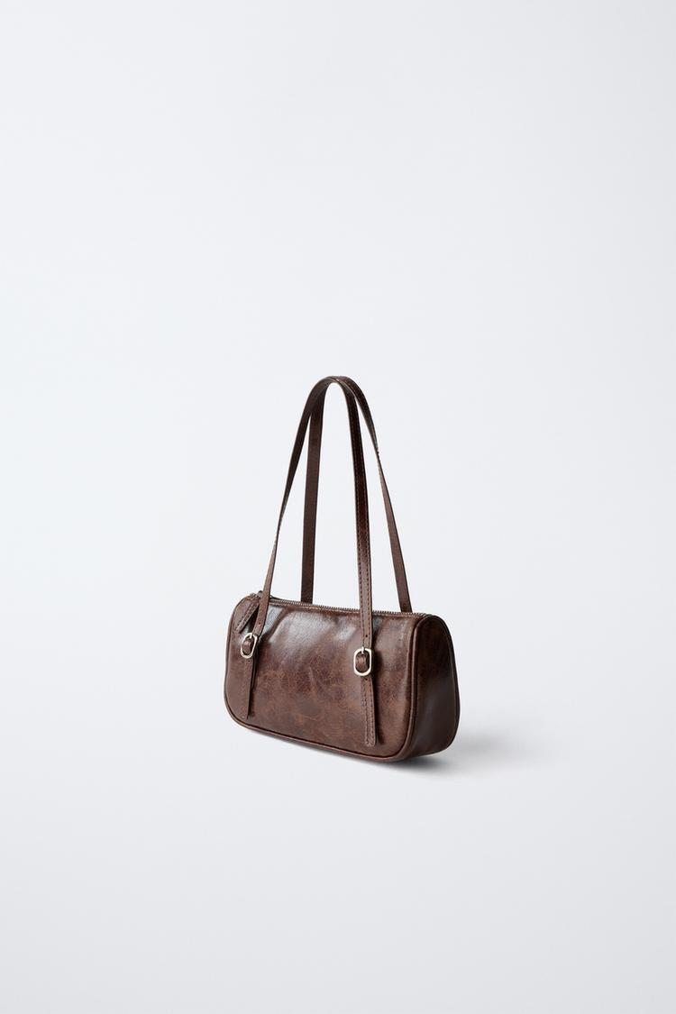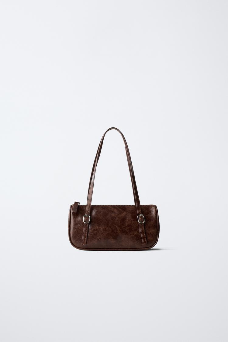 ZARA СУМКА С ПЛЕЧЕВЫМ РЕМНЕМ И ПРЯЖКАМИ, КОРИЧНЕВЫЙ
