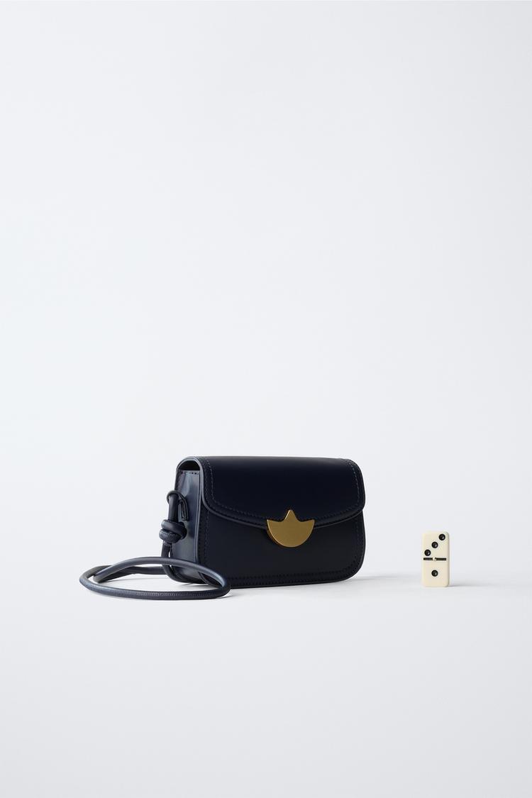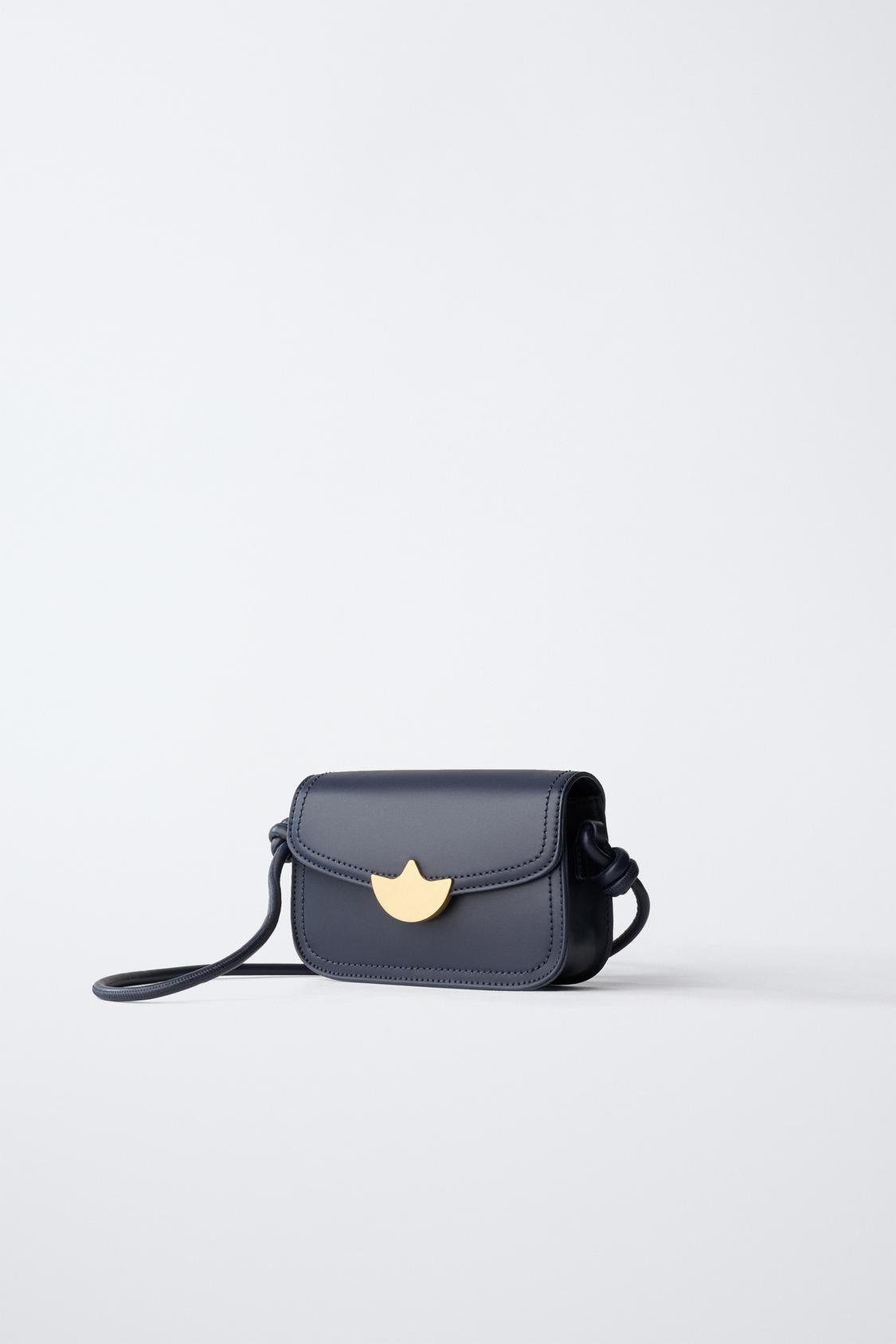 ZARA СУМКА С ПЛЕЧЕВЫМ РЕМНЕМ И ТЮЛЬПАНОМ, СИНИЙ