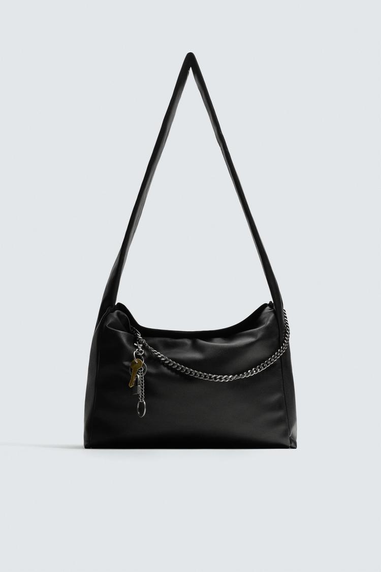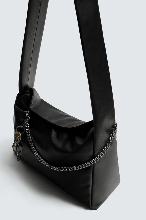 ZARA СУМКА С ЦЕПОЧКОЙ НА ПЛЕЧО, ЧЕРНЫЙ
