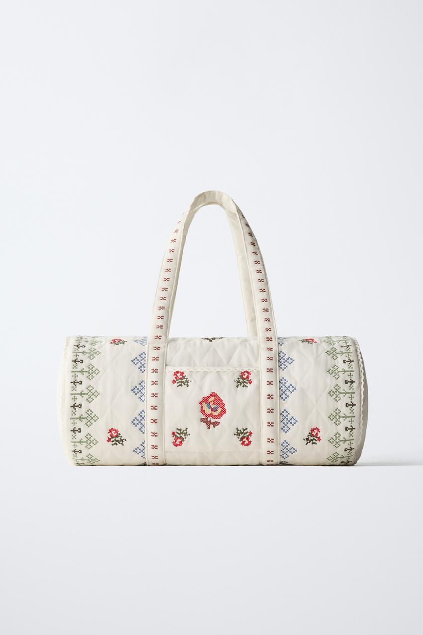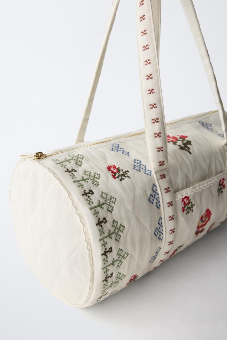 ZARA СУМКА С ВЫШИВКОЙ, ЭКРЮ