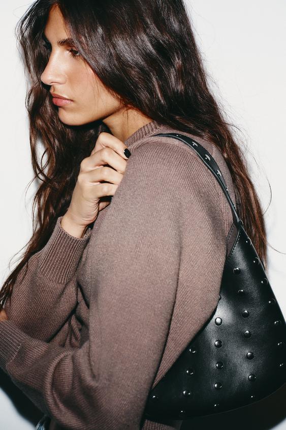 ZARA СУМКА С ЗАКЛЕПКАМИ, ЧЕРНЫЙ