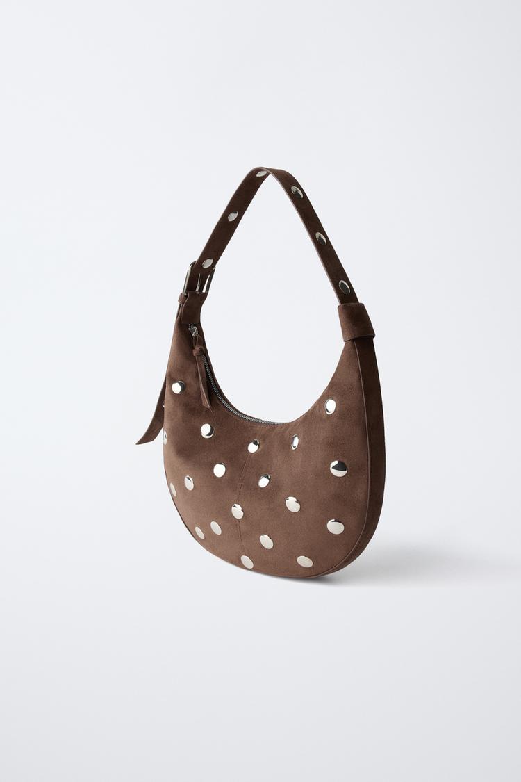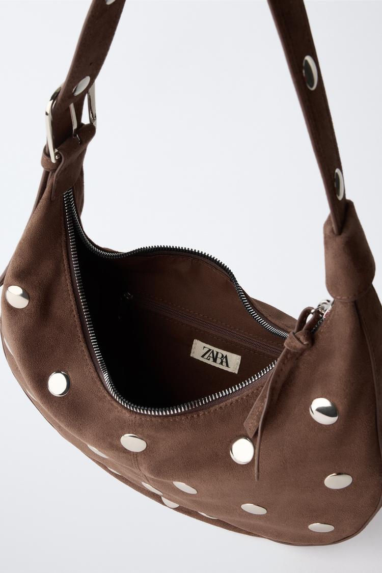 ZARA СУМКА С ЗАКЛЕПКАМИ, КОРИЧНЕВЫЙ