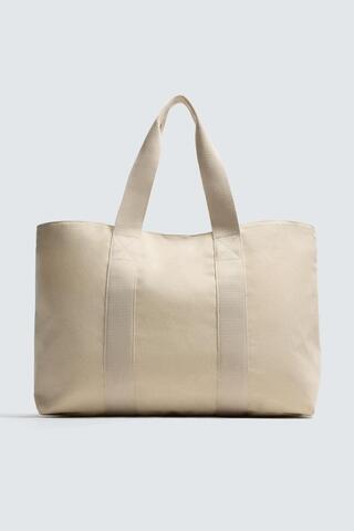 ZARA СУМКА ШОПЕР ИЗ ТКАНИ, ЭКРЮ