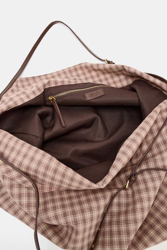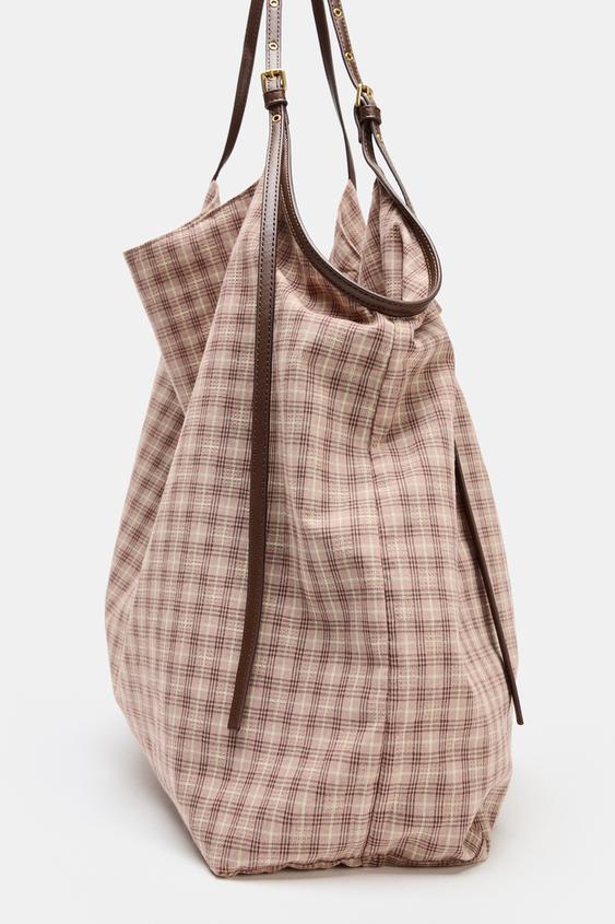 ZARA СУМКА-ШОПЕР ИЗ ТКАНИ, РОЗОВЫЙ