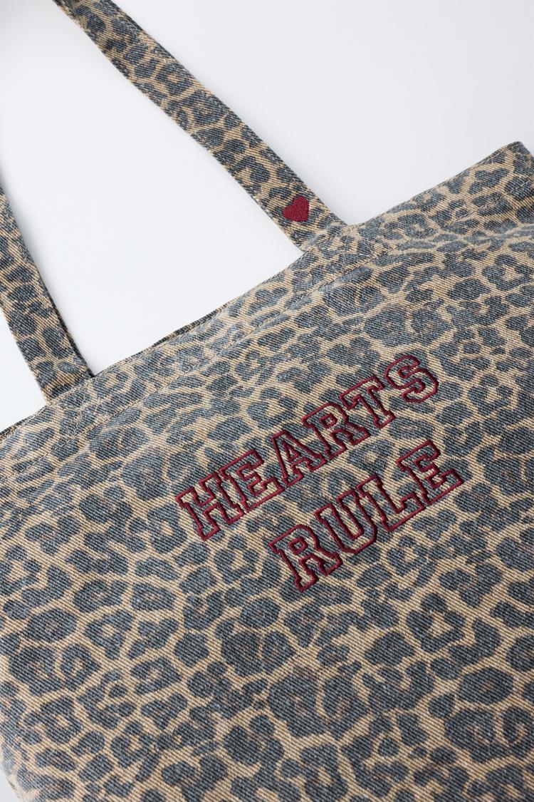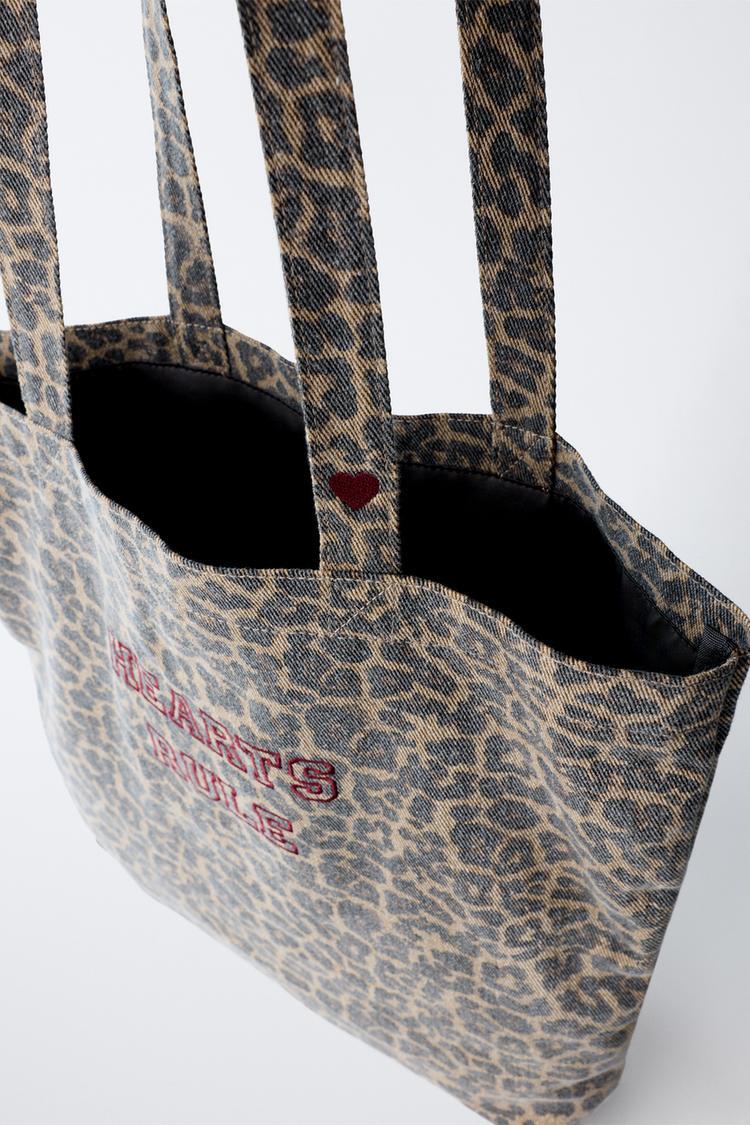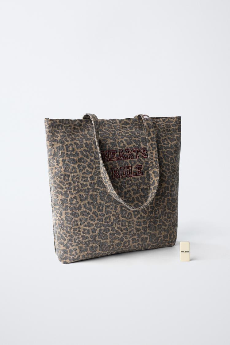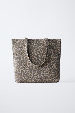 ZARA СУМКА-ШОПЕР С АНИМАЛИСТИЧЕСКИМ ПРИНТОМ, ЧЕРНЫЙ