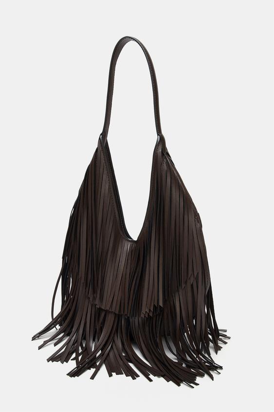 ZARA СУМКА-ШОПЕР С БАХРОМОЙ, КОРИЧНЕВЫЙ