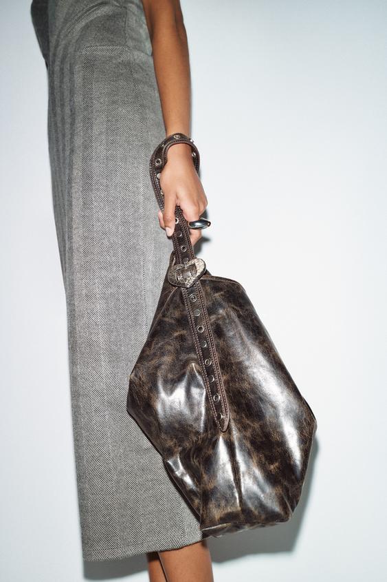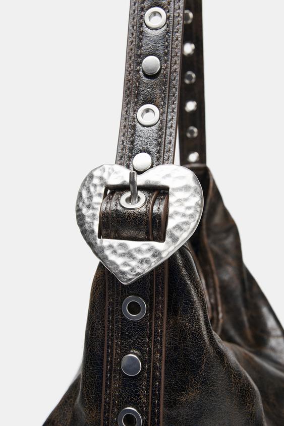 ZARA СУМКА-ШОПЕР С ЗАКЛЕПКАМИ, ШОКОЛАДНЫЙ