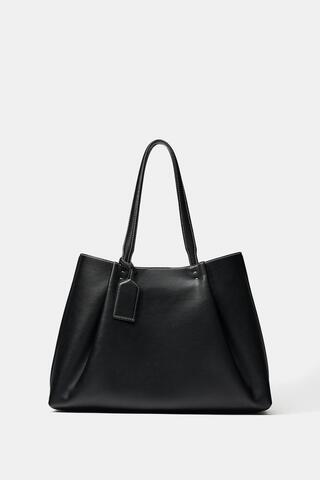 ZARA СУМКА-ШОПЕР С ЗАЩИПАМИ, ЧЕРНЫЙ