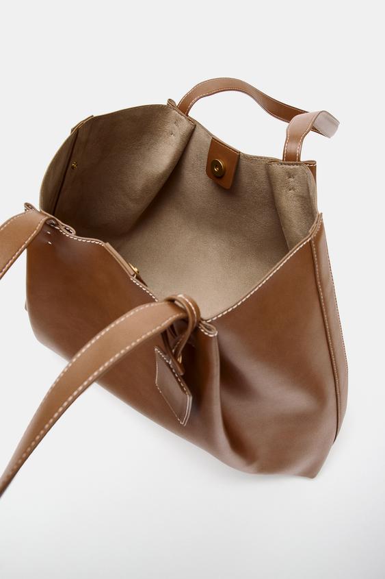 ZARA СУМКА-ШОПЕР С ЗАЩИПАМИ, ТЕМНЫЙ РЫЖЕВАТО-КОРИЧНЕВЫЙ