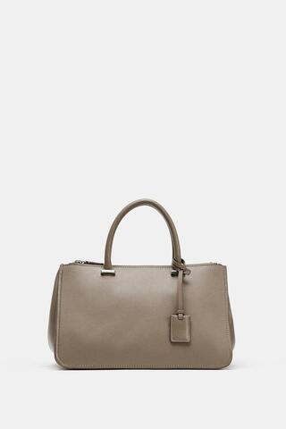 ZARA СУМКА-СИТИ С ДВУМЯ РУЧКАМИ, СЕРО-КОРИЧНЕВЫЙ