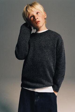 Свитер с круглым вырезом и длинными рукавами. Детали в рубчик. Изготовлен из 100% кашемира.