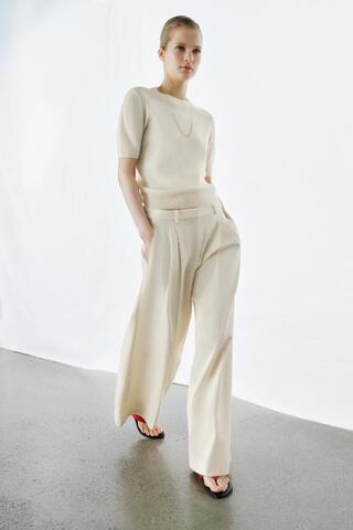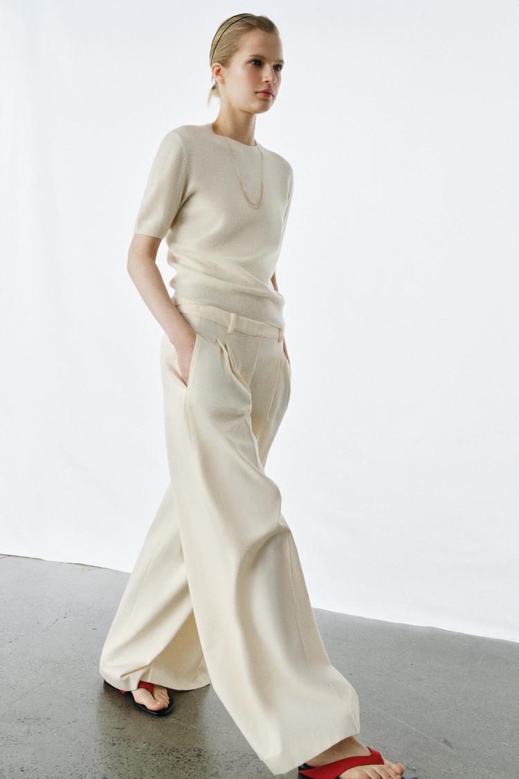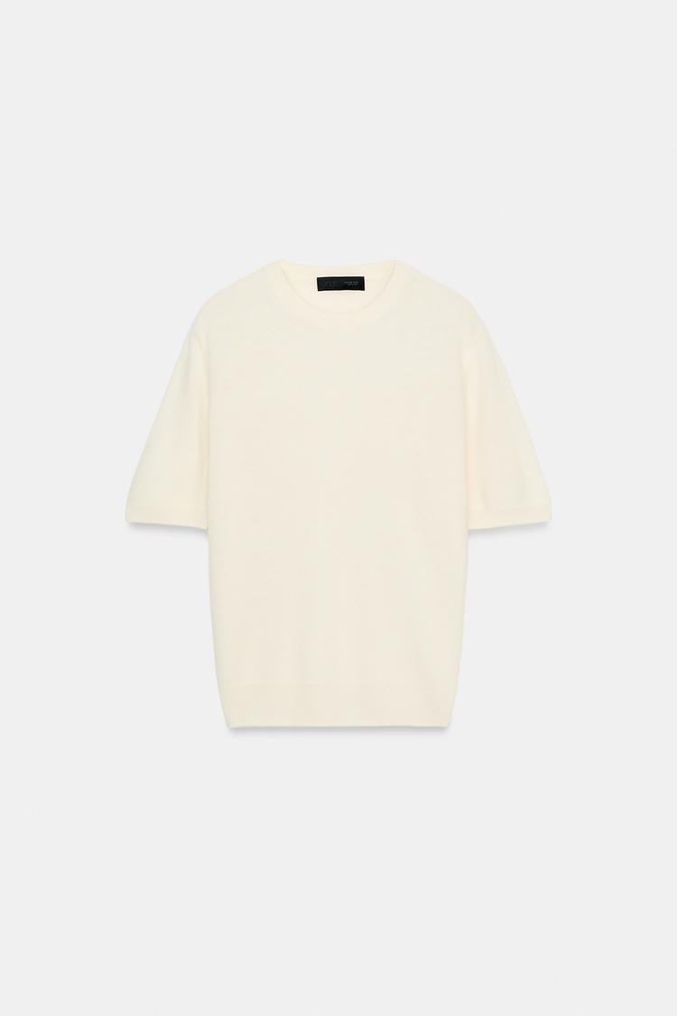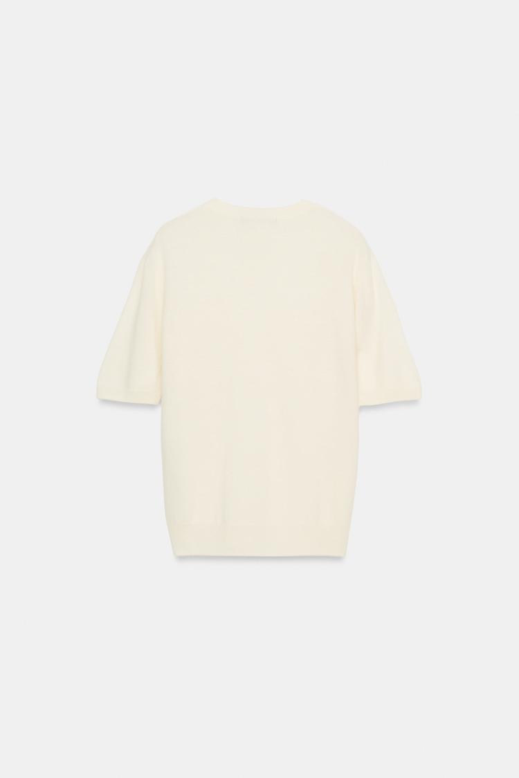 ZARA СВИТЕР ИЗ 100% ШЕРСТИ С КОРОТКИМИ РУКАВАМИ, ЭКРЮ