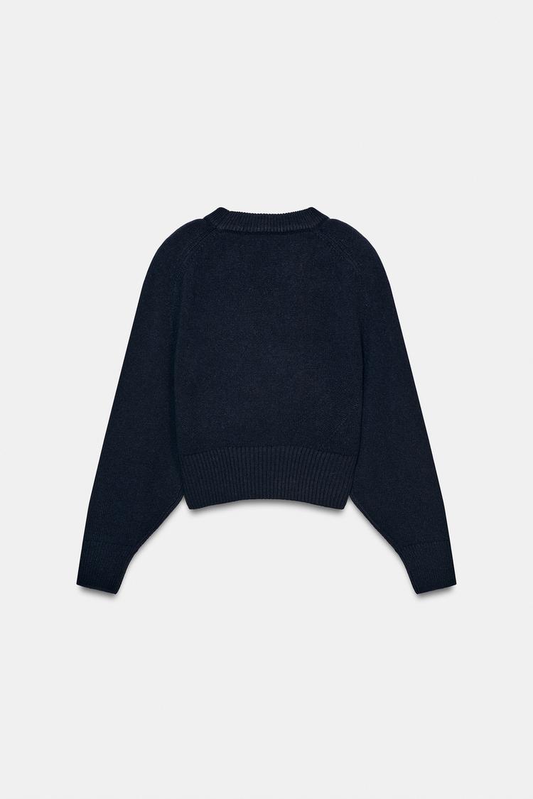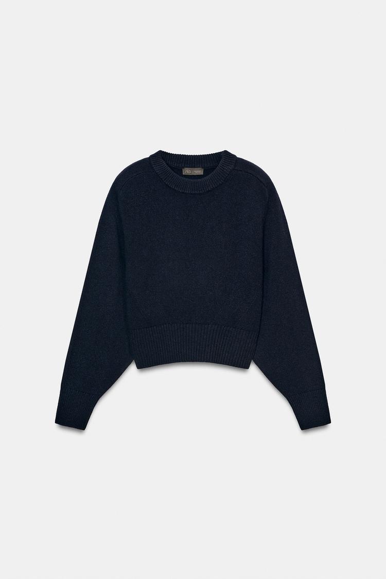 ZARA СВИТЕР ИЗ 100% ШЕРСТИ С ПОДПЛЕЧНИКАМИ, МОРСКОЙ СИНИЙ