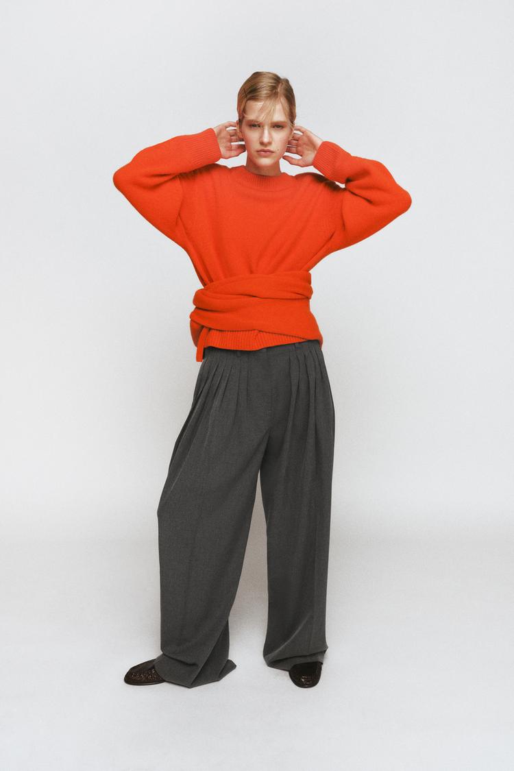 ZARA СВИТЕР ИЗ 100% ШЕРСТИ С ПОДПЛЕЧНИКАМИ, ОРАНЖЕВЫЙ