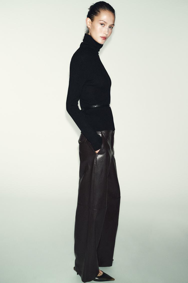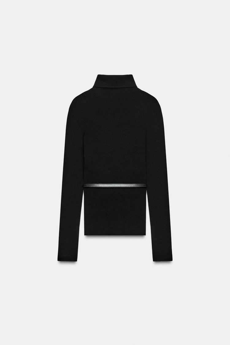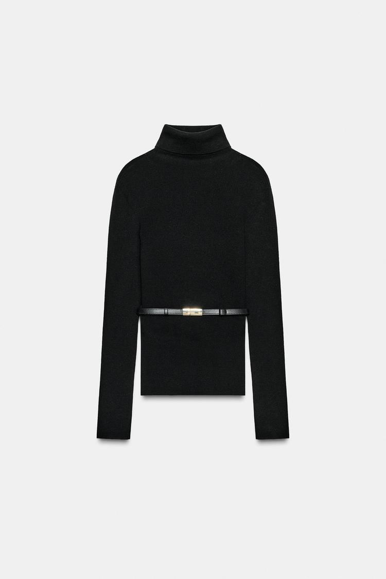 ZARA СВИТЕР ИЗ 100% ШЕРСТИ С ВЫСОКИМ ВОРОТНИКОМ И РЕМНЕМ, ЧЕРНЫЙ