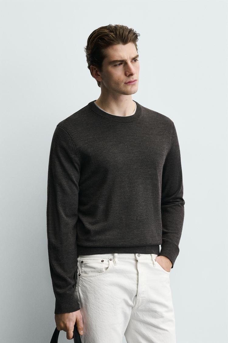 ZARA СВИТЕР ИЗ 100% ШЕРСТИ, СЕРО-КОРИЧНЕВЫЙ МЕЛАНЖ