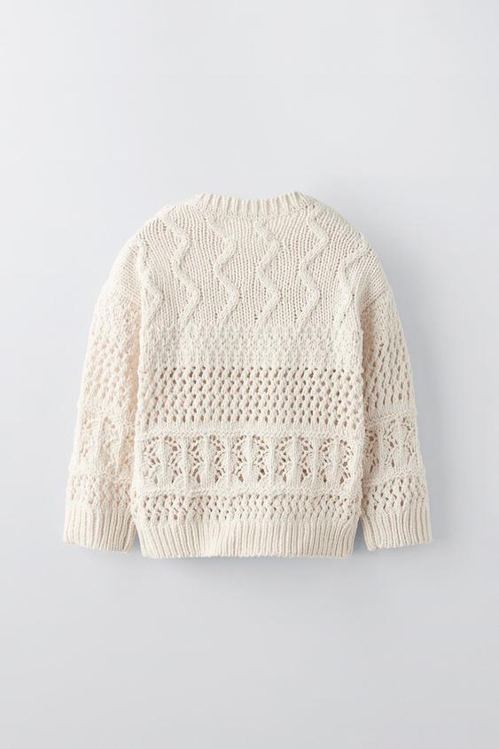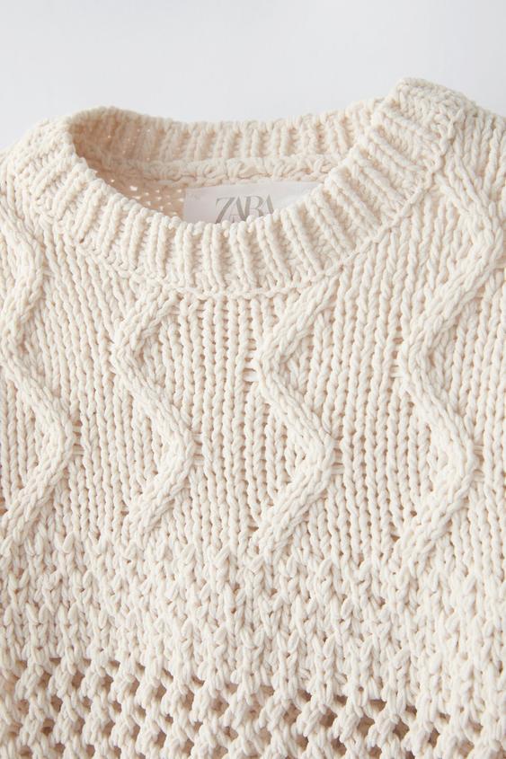 ZARA СВИТЕР ИЗ БАРХАТИСТОЙ СИНЕЛИ, ЭКРЮ