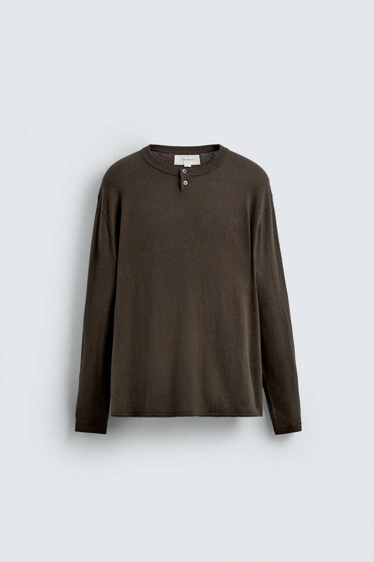 ZARA СВИТЕР ИЗ ХЛОПКА И КАШЕМИРА С ПУГОВИЦАМИ НА ГОРЛОВИНЕ, ШОКОЛАДНЫЙ