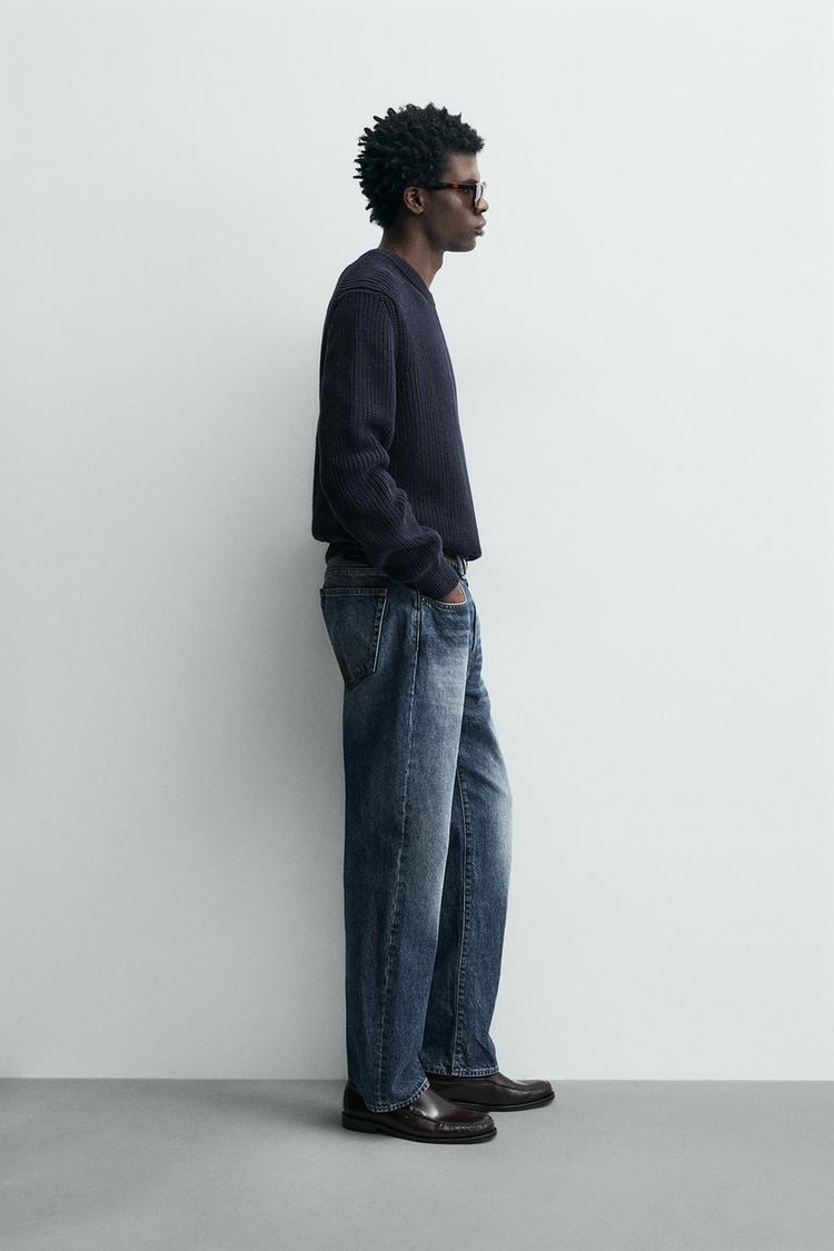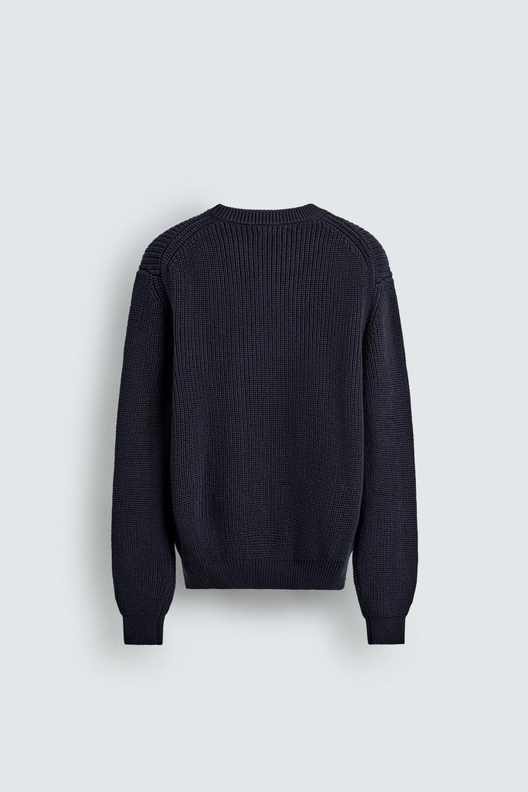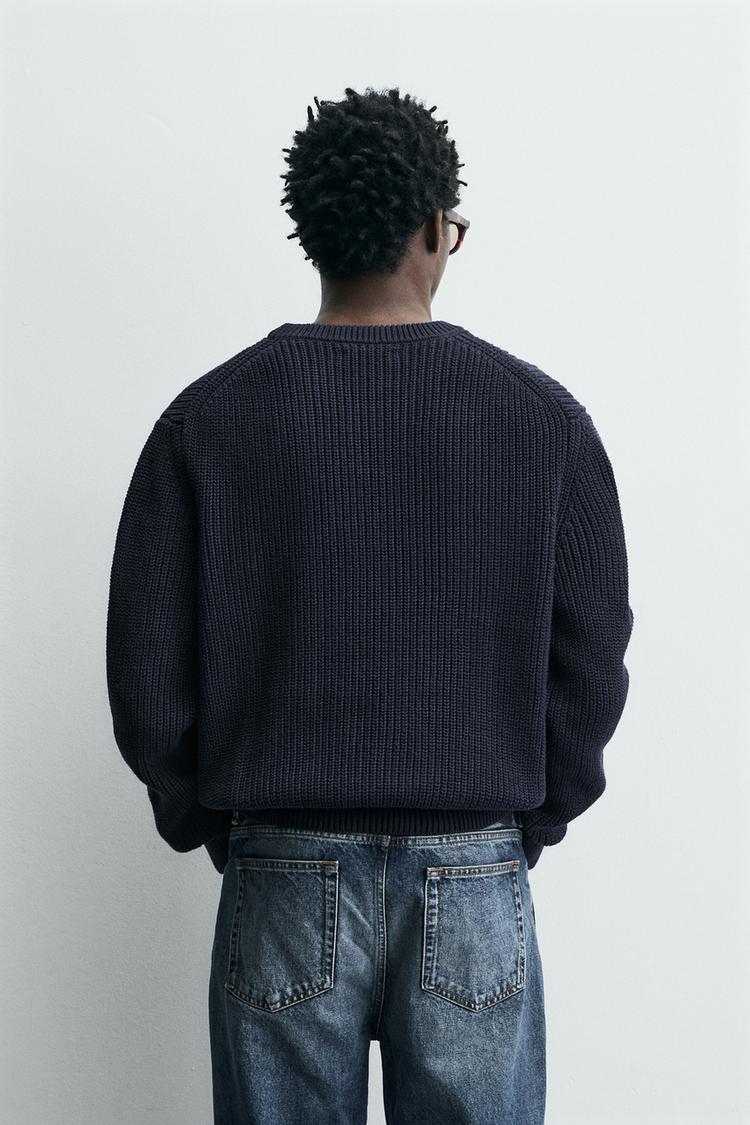 ZARA СВИТЕР ИЗ ХЛОПКА КЛАССИЧЕСКОГО КРОЯ, МОРСКОЙ СИНИЙ