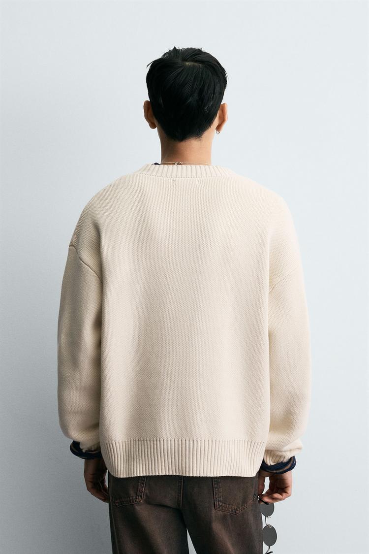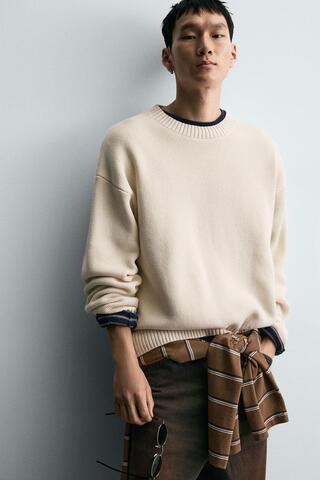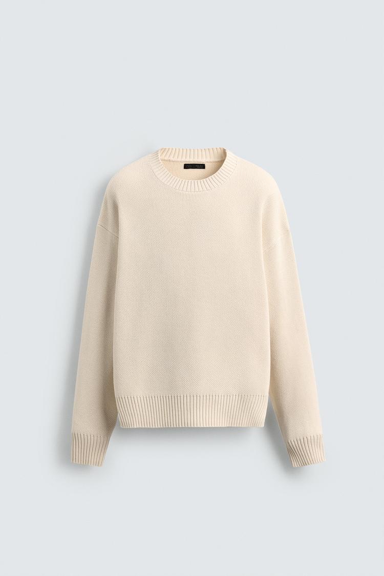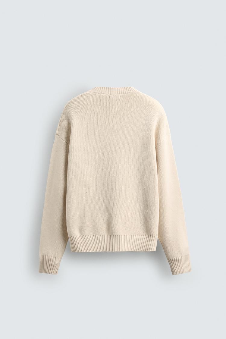 ZARA СВИТЕР ИЗ ХЛОПКА С РЕЛЬЕФНОЙ ТКАНЬЮ, ЭКРЮ