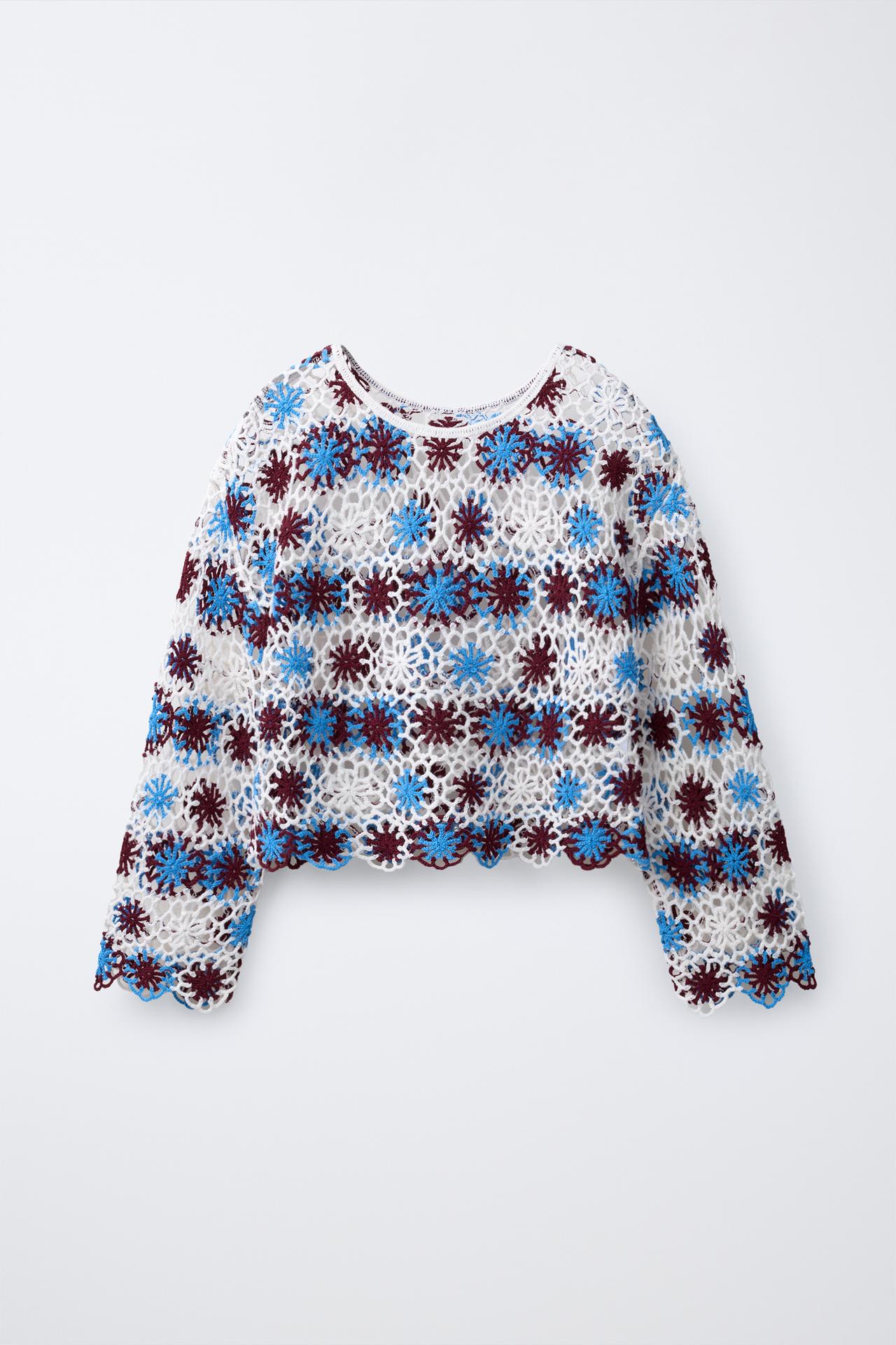 ZARA СВИТЕР ИЗ КРУЖЕВА КРОШЕ С ЦВЕТОЧНЫМ УЗОРОМ, РАЗНОЦВЕТНЫЙ